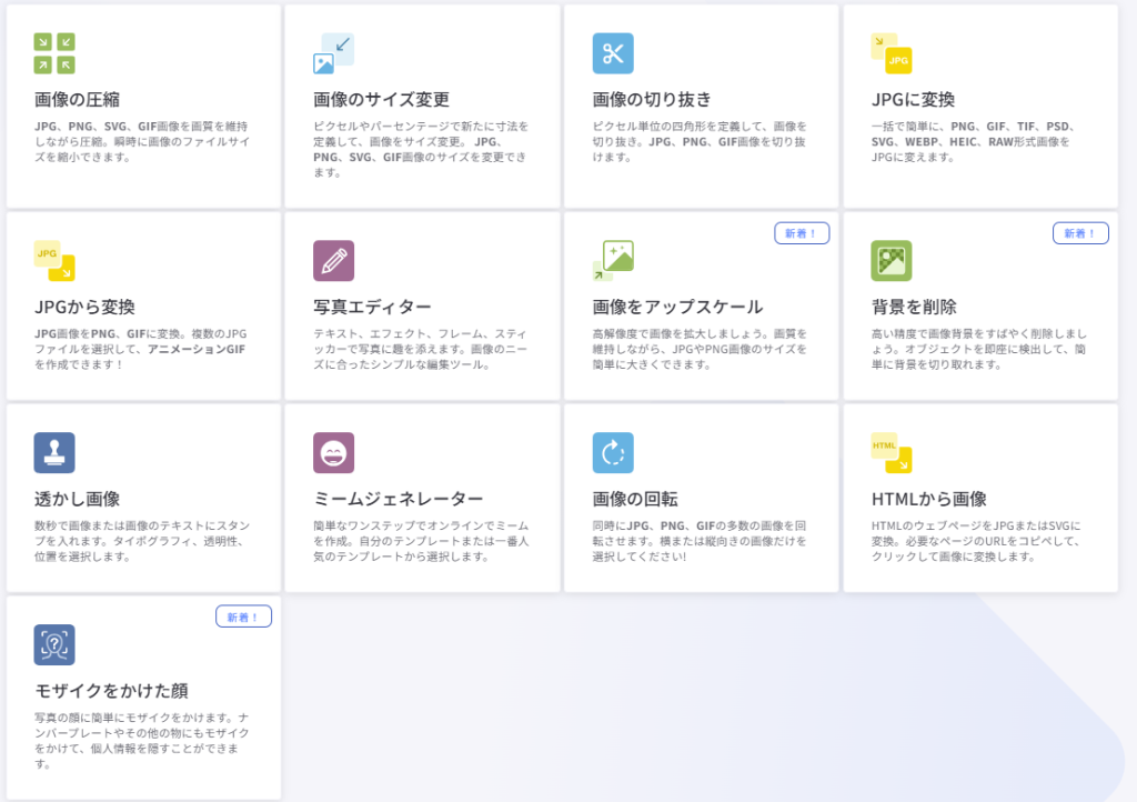 iLoveIMGは、使いやすくて完全無料の画像処理用オンラインサービスです。画像の圧縮、サイズ変更、切り抜き、変換などが可能です!